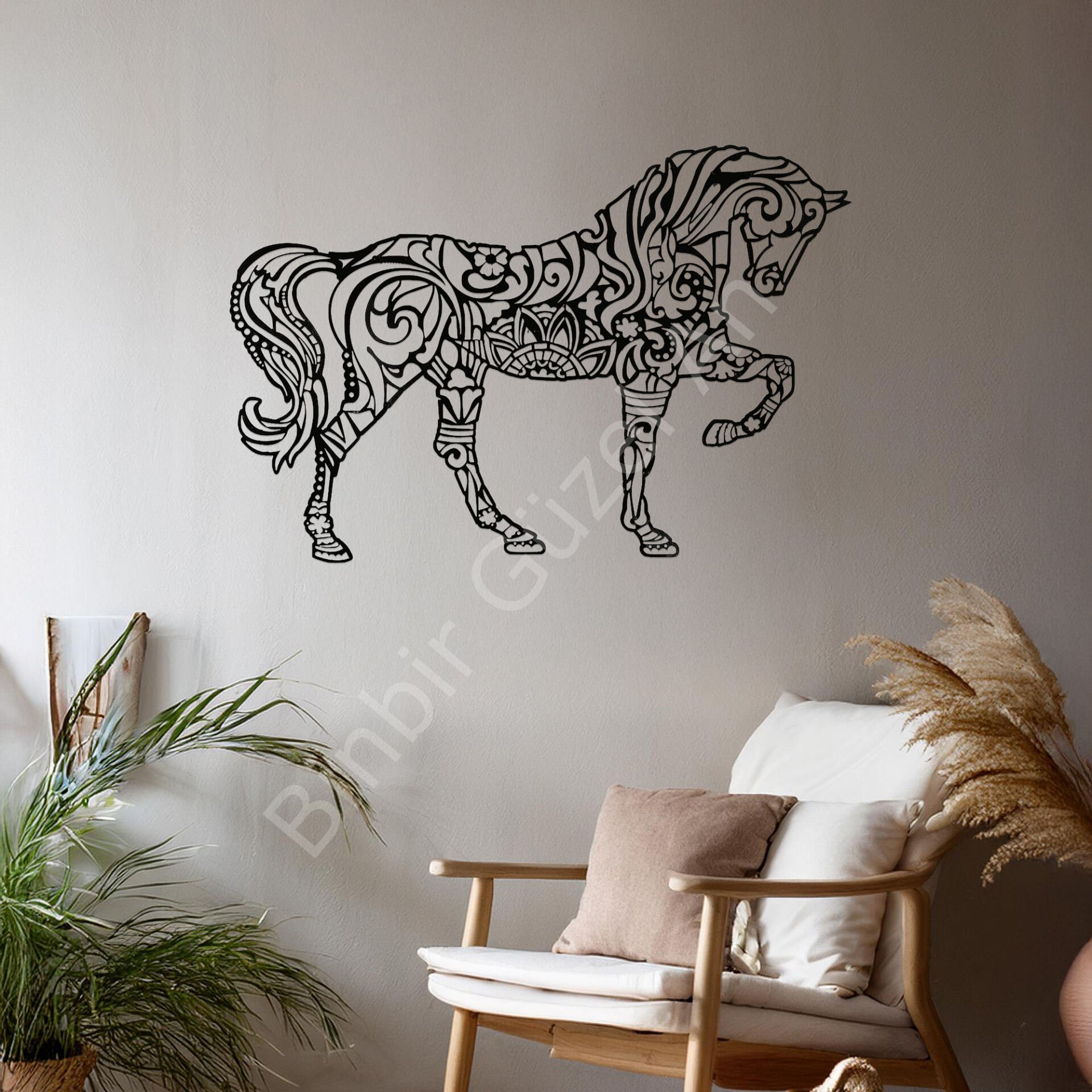 Detaylı lazer kesim işçiliğiyle hayat bulan bu zarif at figürü, sanatı ve doğanın eşsiz güzelliğini mekanınıza taşıyor. Hem dayanıklılığı hem de estetik duruşuyla dikkat çekiyor. Zarif desenleri ve güçlü duruşuyla bulunduğu her ortama asalet katan bu duvar dekoru, evinizin veya ofisinizin atmosferini yenilemek için ideal bir tercih. Şıklığıyla görenleri büyüleyecek bu sanat eserini duvarlarınıza taşıyın!