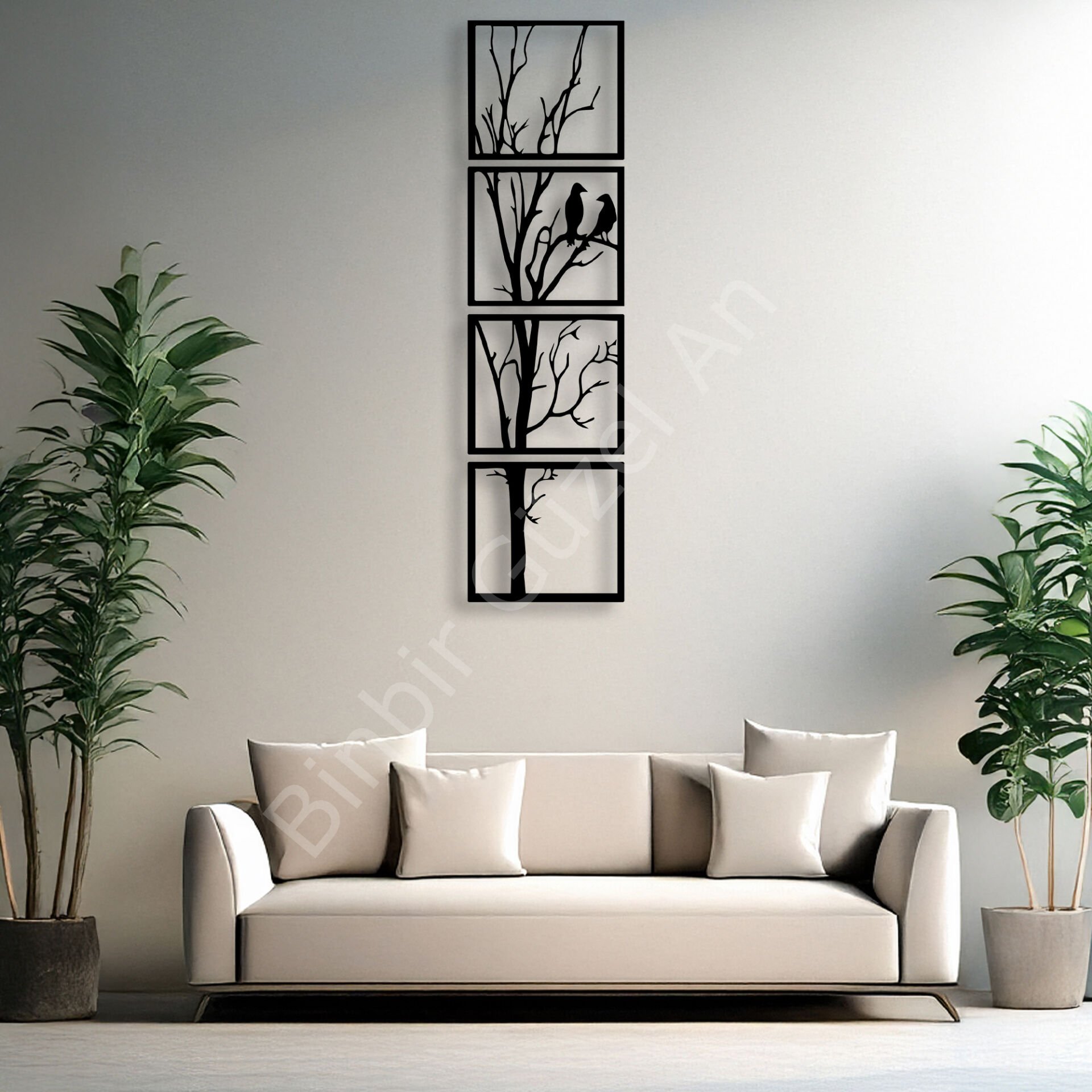 Bu lazer kesim metal duvar dekoru, minimalist çizgilerle hayat bulan doğa temasını modern bir bakış açısıyla buluşturuyor. İnce detaylarla işlenmiş ağaç figürü ve dallarında konumlanan kuşlar, dinginliği ve huzuru simgeliyor. Dikey düzenlemesiyle dar alanlarda bile etkileyici bir görünüm sunan bu tasarım, hem modern hem de klasik dekorasyon stilleriyle mükemmel uyum sağlar. Yaşam alanlarınıza sıcaklık ve doğallık katmak için tasarlanmış olan bu eser, evinizin duvarlarında sanatsal bir dokunuş yaratacak!"