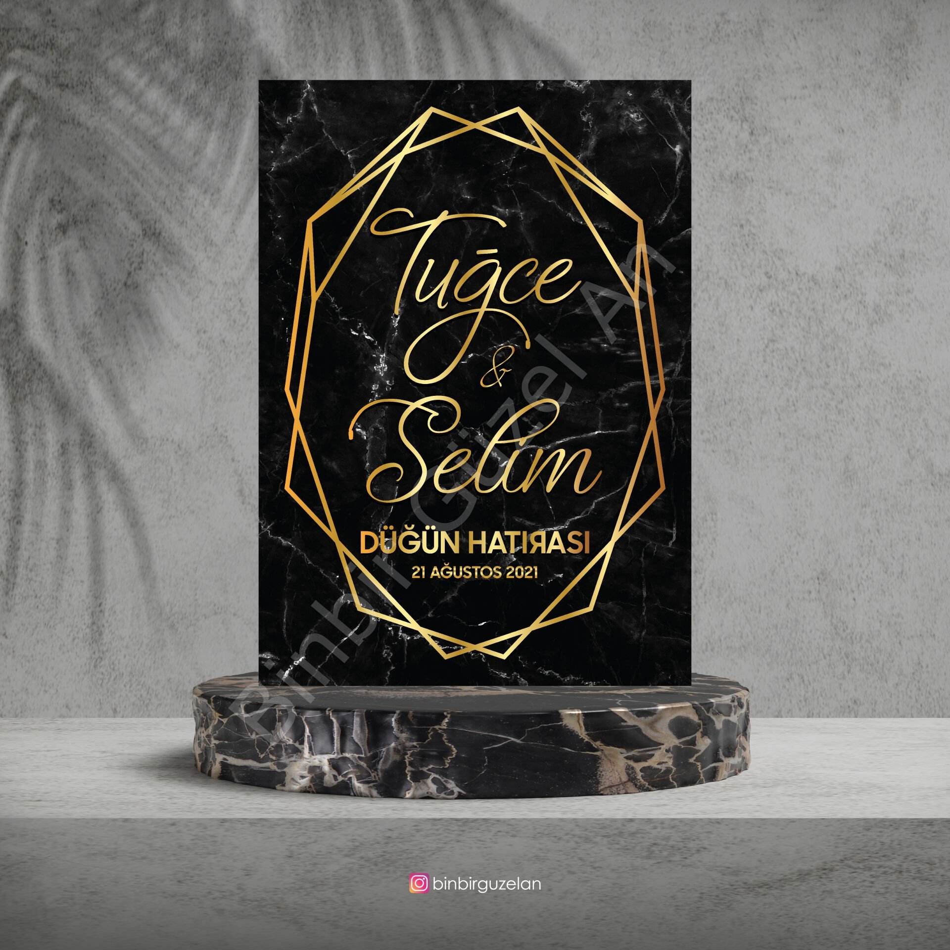 Siyah Mermer & Gold Karşılama Panosu